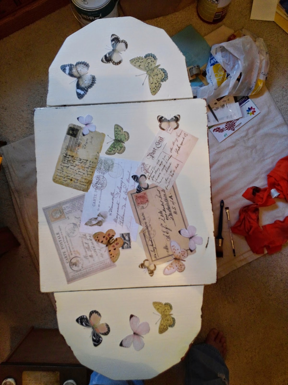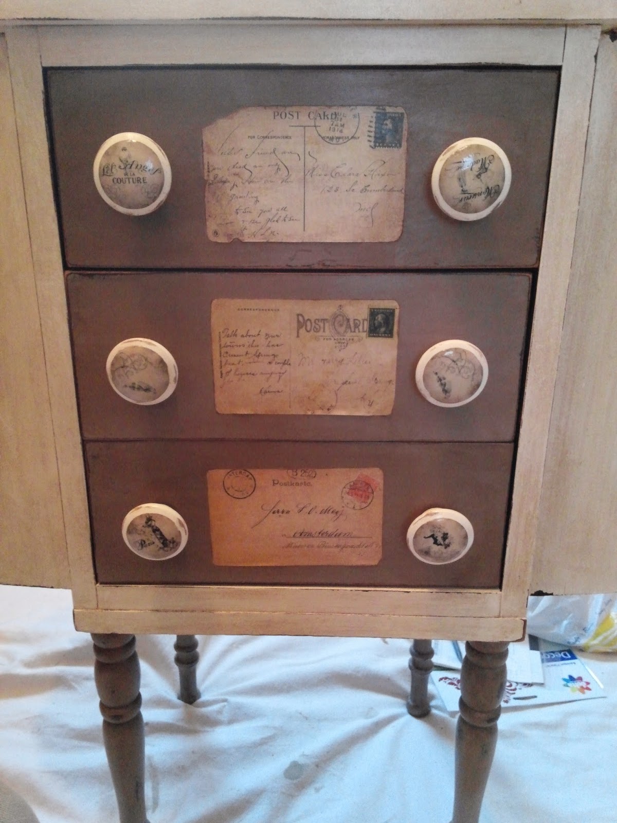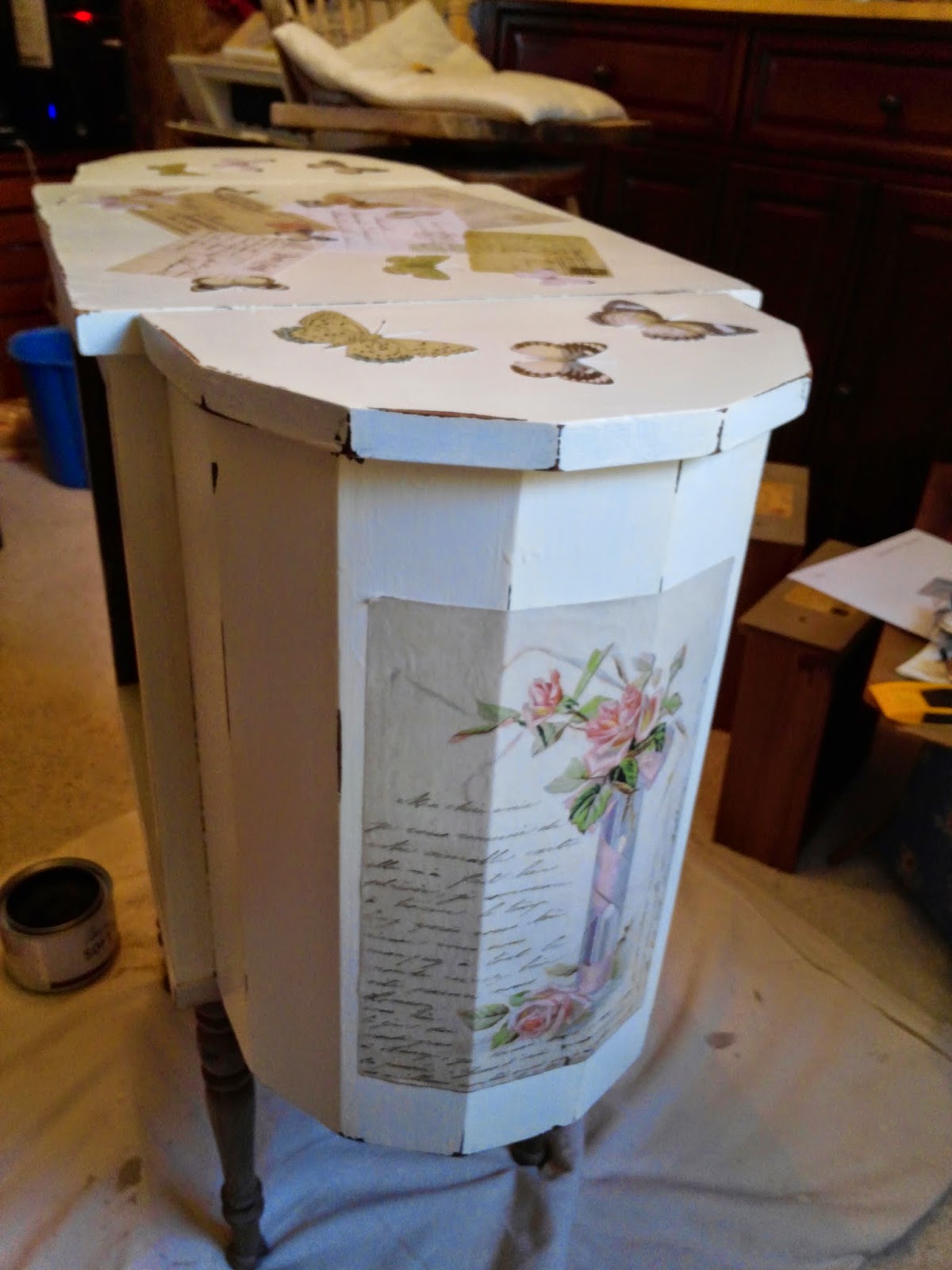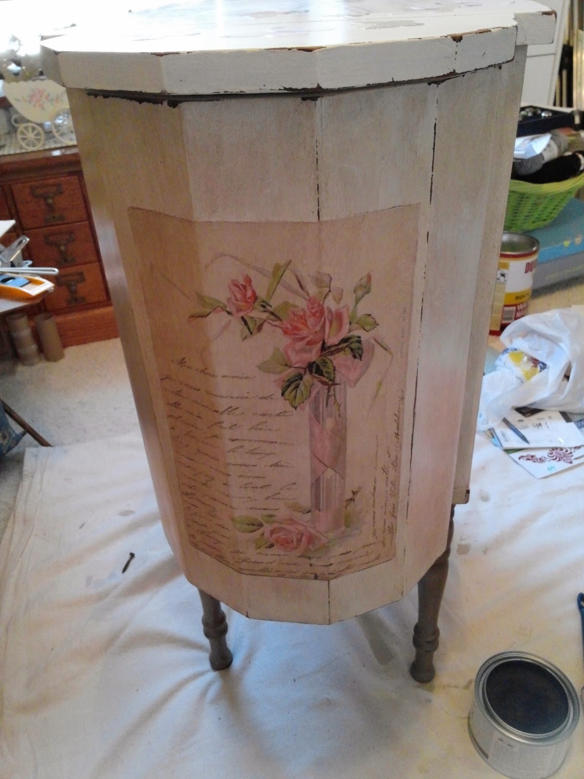 I found some pieces at a local antique shop that I purchased and wanted to re-finished them. Last project I used Anne Slone’s paint and it turned out great, but I wanted to try to make my own and to see the difference. Annie’s is a bit thicker but mine worked just as well for me and it is a lot easier on my pocket book.