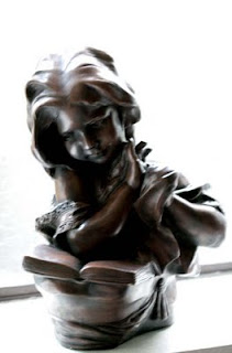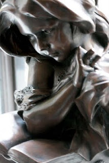 So I have been busy…how about you? There is a lot to tell you all, but where to begin. To begin with, I went to my thrift store and found the most amazing piece that an artist can probably find. This beautiful bronze statue of a most lovely, couldn’t get any sweeter little girl holding her dress and reading a book bust. She was only $19.95. GET OUT! I was thrilled to say the least. She now sits in my front window and I have my coffee with her every morning. Blessed.